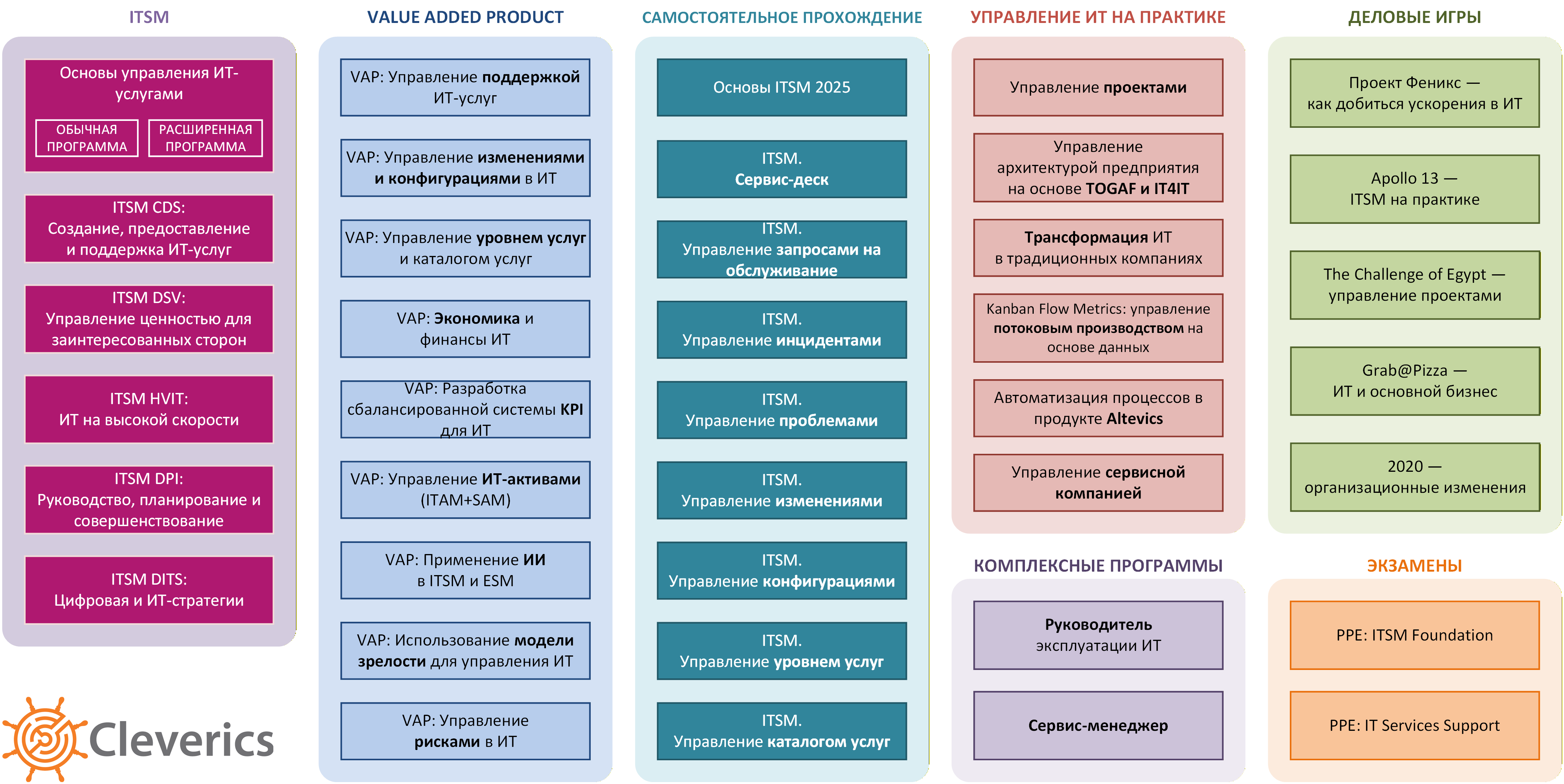 Курс создан компанией, сотрудники которой входят в команду разработки ITIL 4. Другие заявляют лишь об участии в открытом Global ITIL Development Community — мы же непосредственно вовлечены в создание новых продуктов AXELOS, включая тексты книг ITIL.